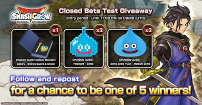 From September 19 (UTC) until September 26 (UTC), the game is running a special giveaway campaign on its X and Facebook pages. To apply, players must follow the official X account (@DQSG_EN) and repost the giveaway campaign post. For Facebook, like the official Facebook page (https://sqex.to/PTsCY) and leave a comment. Prizes include a DRAGON QUEST Metallic Monsters Gallery (Erdrick Sword & Shield) for 1 winner, a DRAGON QUEST Pixelight (Slime) for 1 winner and a DRAGON QUEST Smile Slime Plush (Medium Slime) for 2 winners.