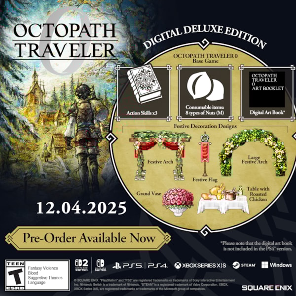 Both games will be available day-and-date on Nintendo Switch™ 2, PlayStation®5, Xbox Series X|S, and PC via Steam and Microsoft Store. Additionally, OCTOPATH TRAVELER 0 will have Nintendo Switch™ and PlayStation®4 versions. Pre-orders for OCTOPATH TRAVELER 0 are rolling out today.*